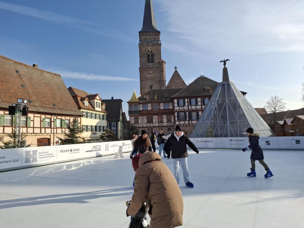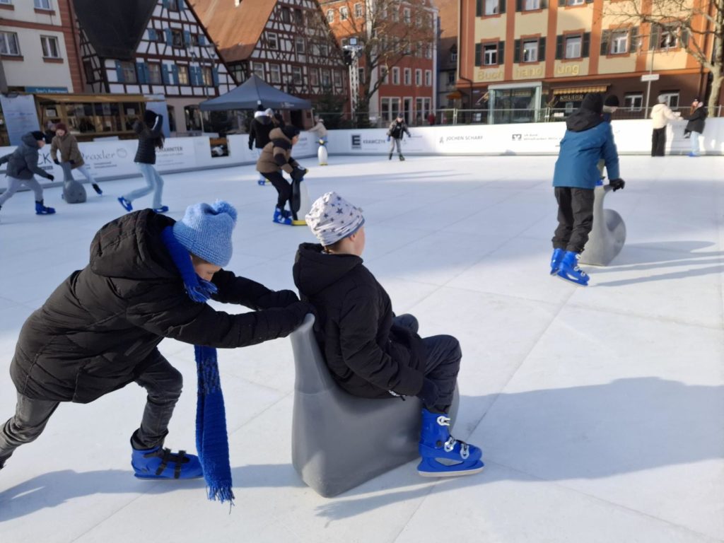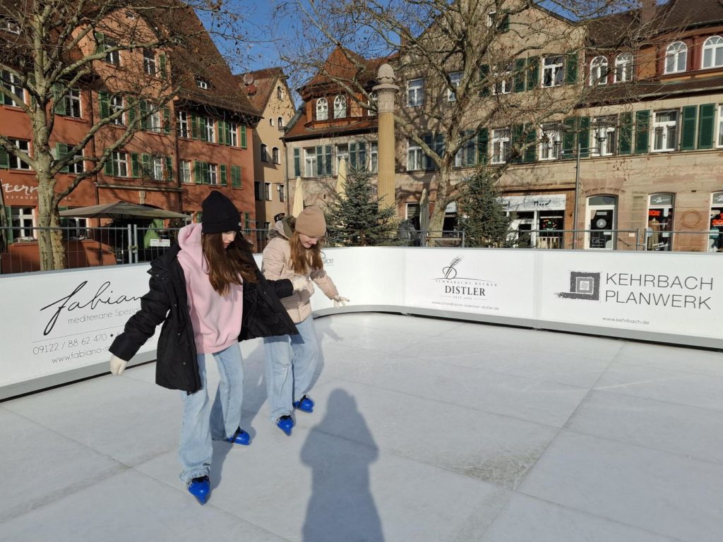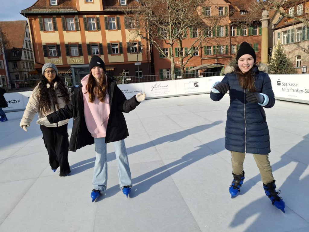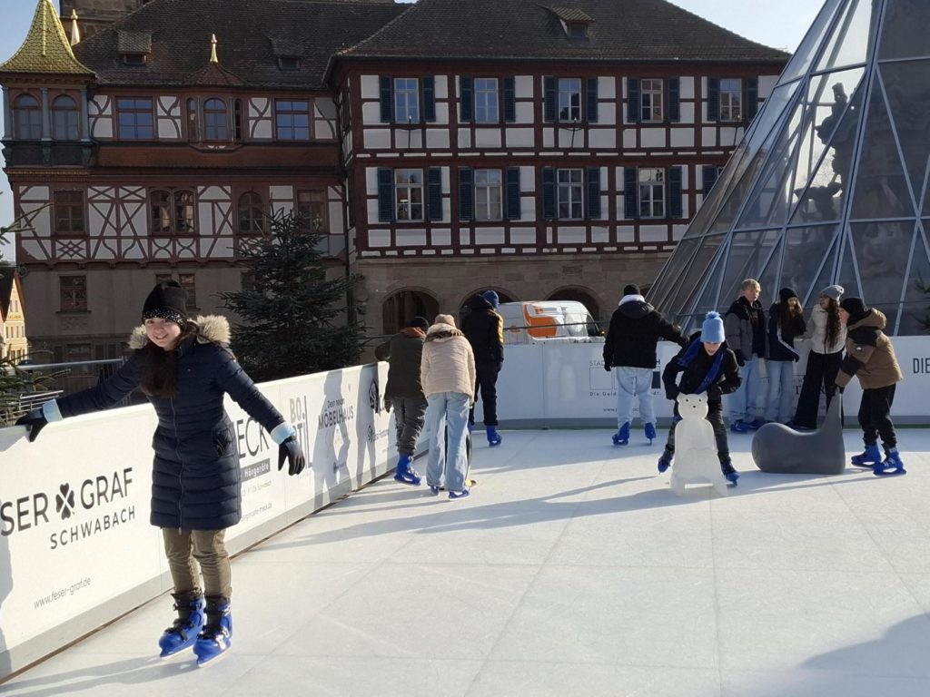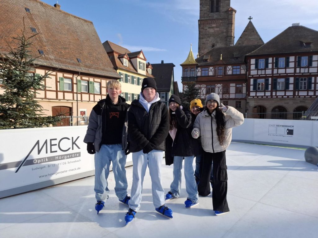 Die Klassen 5.1 und 5.2 waren beim Schlittschuhfahren auf dem Schwabacher Marktplatz.