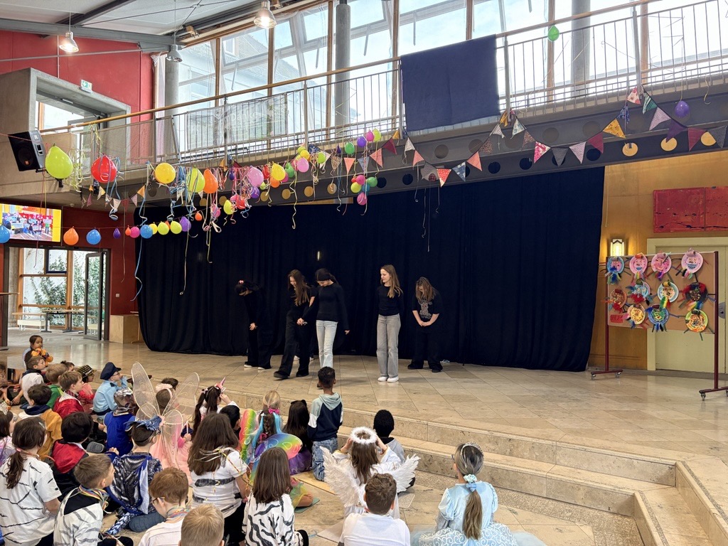 eine lustige Zebrageschichte, ein mitreißendes Trommelfeuer, einen spannenden Auftritt von Magiern, einen Tanz zu „Only Girl in the World“ und zum Abschluss eine fröhliche Polonäse durch das Schulhaus.